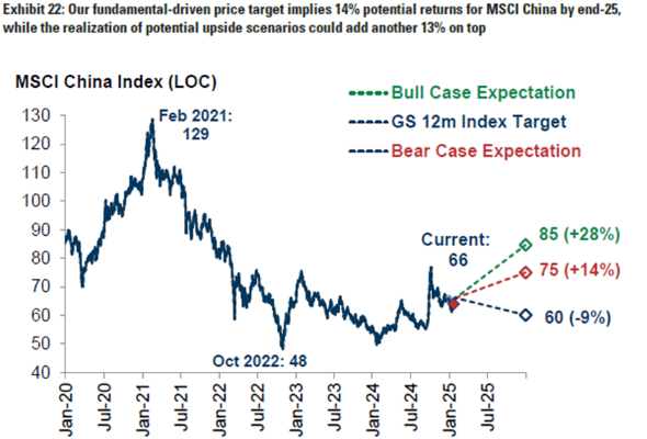 与此同时,德意志银行在其报告中强调了Deepseek的意义,不仅因为它代表了中国知识产权的价值,更因为这表明了中国在高附加值领域的优势以及供应链主导地位正在快速扩展。德银预计,随着中国企业在制造和服务行业的持续成功,中国股票的“估值折价”将会消失,特别是在消费支持政策和金融自由化的背景下,盈利能力可能会超出预期。德银因此预测A股和港股将继续牛市,并逐步消除目前的低估状态。