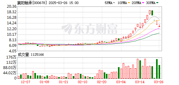 三环集团是湖北省大型制造企业,资产总额达240亿元,主营专用汽车和汽车零部件等。财报显示,襄阳轴承去年前三季度营收10.95亿元,同比下滑8.3%,净亏损1945.43万元,亏损同比收窄56.34%。预计2024年亏损3500万元。自2月底以来,襄阳轴承因“机器人概念股”标签股价大涨,曾创下18.9元历史新高。深交所对近期涨幅较大的襄阳轴承进行了重点监控。襄阳轴承始建于1968年,1996年在深交所上市,是中国汽车轴承制造商和国家重点轴承出口基地。2024年5月,贾志宏因合同诈骗等罪名被判无期徒刑。截至3月26日收盘,襄阳轴承股价跌至13.14元/股,跌幅4.78%。